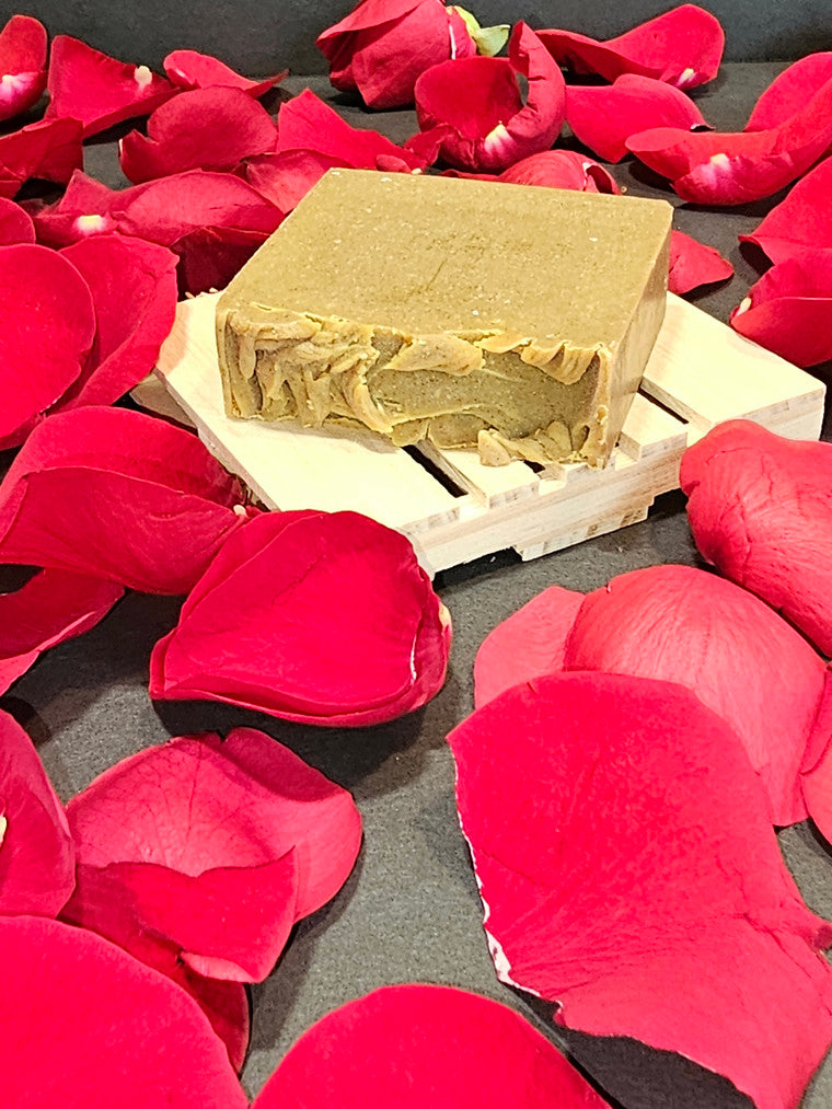 Ingredients: Olive Oil*, Coconut Oil*, Castor Oil*, Mango Butter*, Rose Powder*, Essential Oil (Amber)